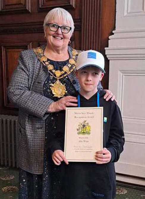 Mayor of Wakefield, Cllr Maureen Tennant-King, recognises Alfie’s achievements.